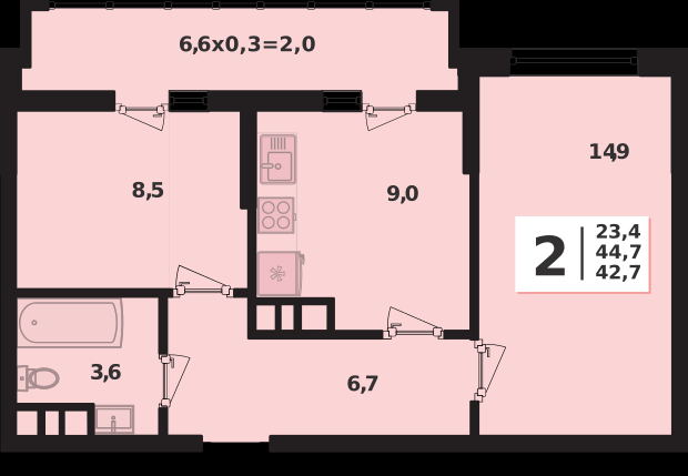 | Площадь, кв.м. | 44.7 |