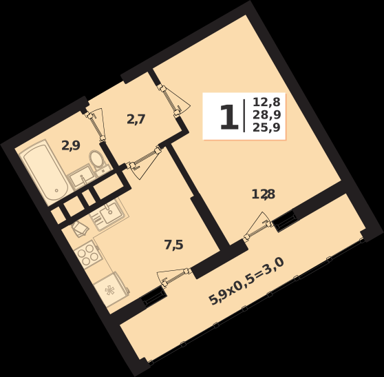 Продается однокомнатная новостройка, 29 кв.м., 16/19 эт