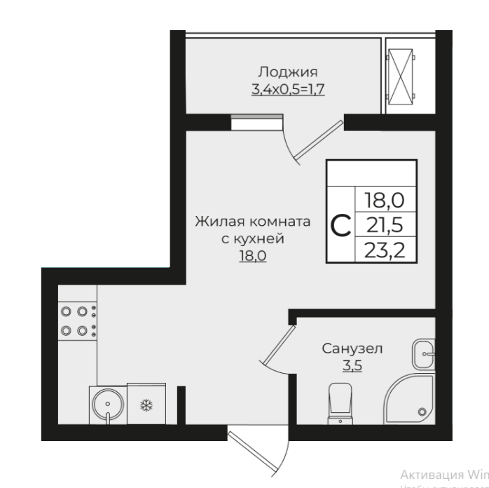 Продается Студия новостройка, 23.42 кв.м., 5/7 эт