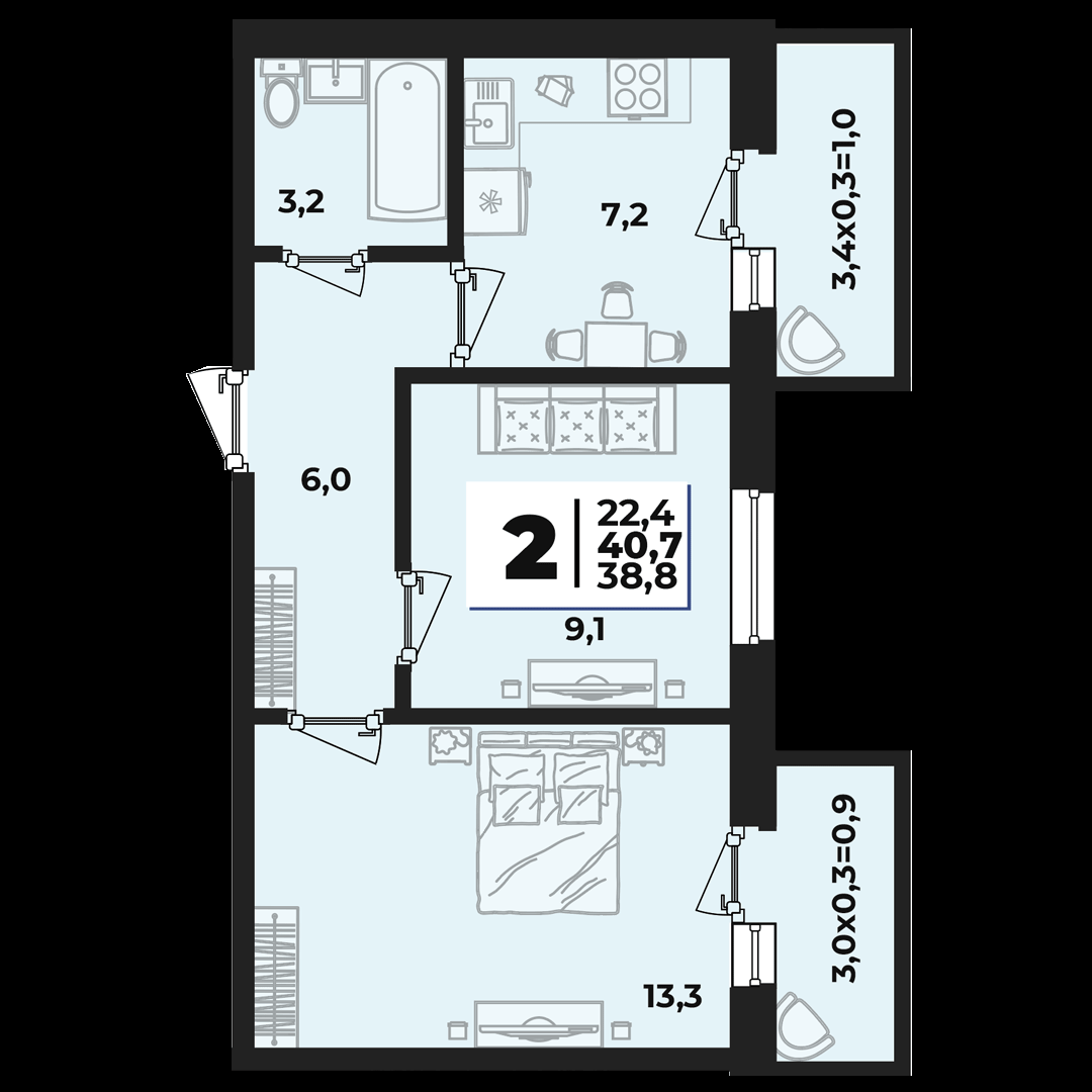 Продается 2-х комн. новостройка, 42 кв.м., 3/5 эт