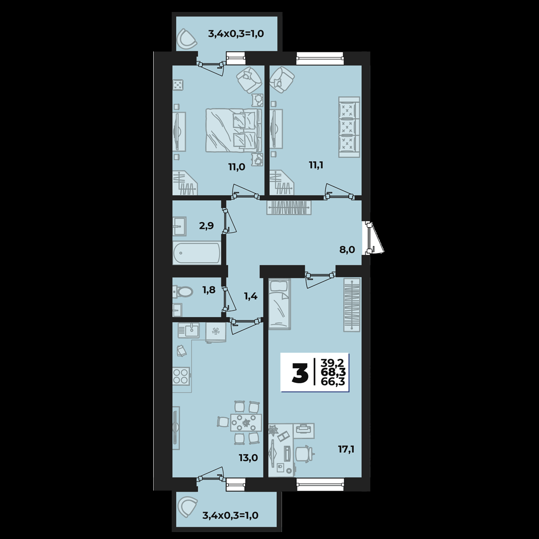 Продается 3-х комн. новостройка, 69 кв.м., 2/5 эт
