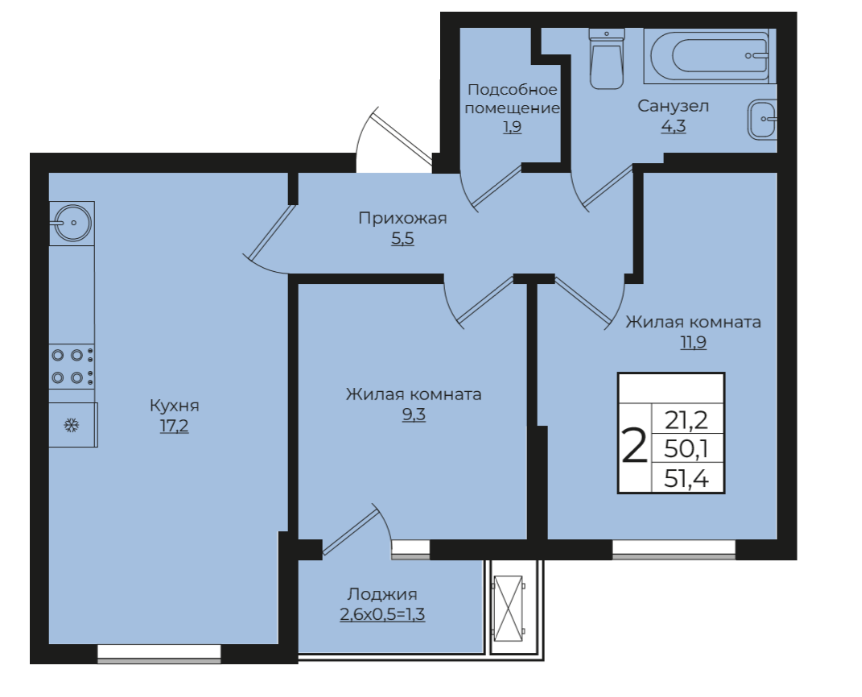 | Площадь, кв.м. | 51.4 |