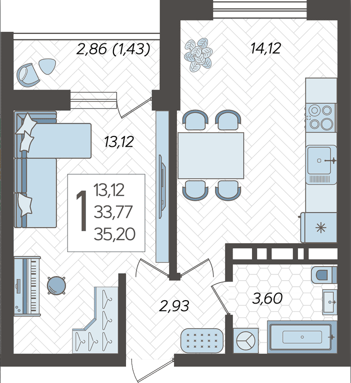Продается однокомнатная новостройка, 35.2 кв.м., 12/16 эт