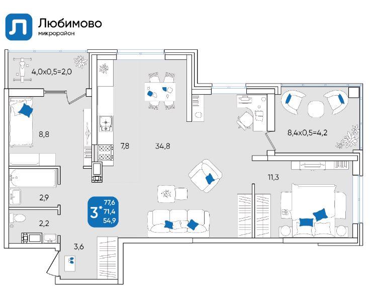 | Площадь, кв.м. | 77.8 |