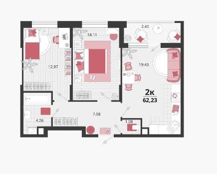 Продается 2-х комн. новостройка, 62.23 кв.м., 9/24 эт