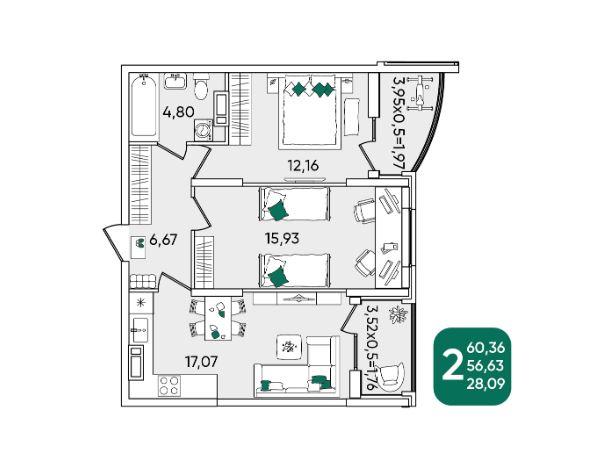 Продается 2-х комн. новостройка, 60.36 кв.м., 10/24 эт