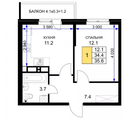 Продается однокомнатная новостройка, 37 кв.м., 14/16 эт