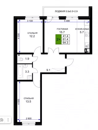 Продается 2-х комн. новостройка, 64.85 кв.м., 11/16 эт
