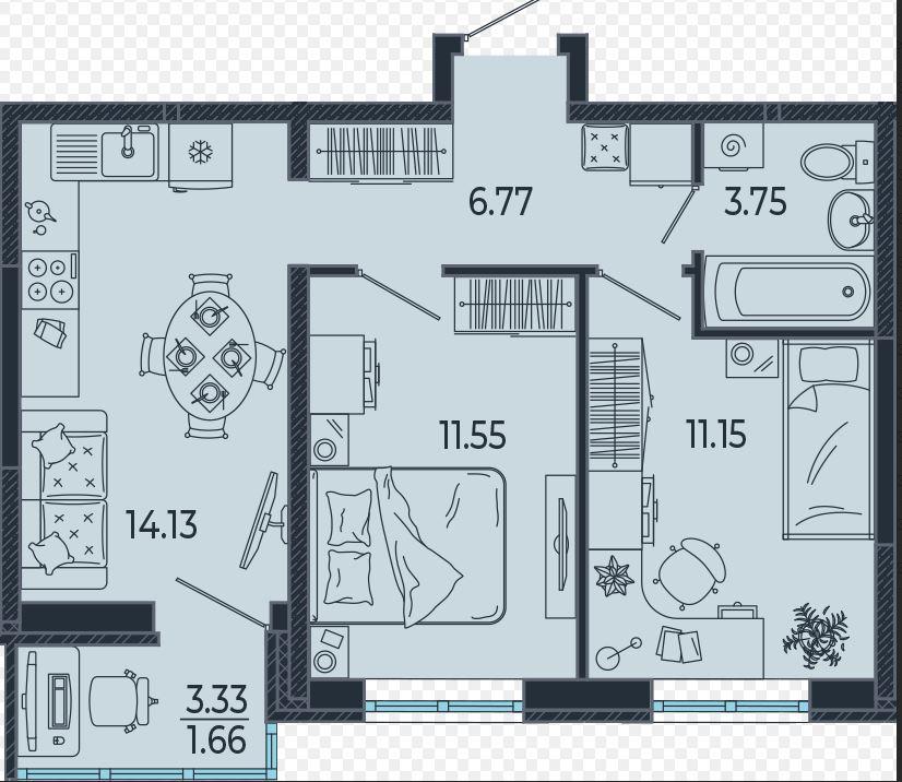 Продается 2-х комн. новостройка, 49.15 кв.м., 10/21 эт