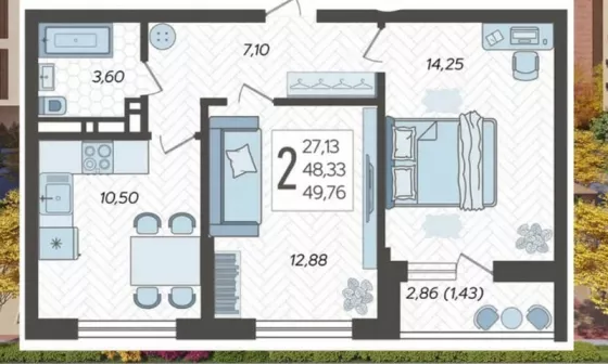 Продается 2-х комн. новостройка, 49.76 кв.м., 10/16 эт