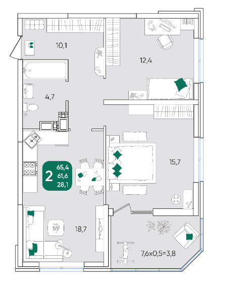 Продается 2-х комн. новостройка, 65.4 кв.м., 19/24 эт