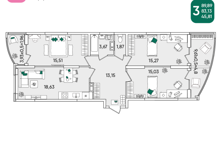 Продается 3-х комн. новостройка, 89.89 кв.м., 13/24 эт