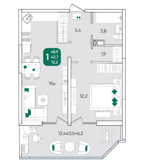 Продается однокомнатная новостройка, 48.9 кв.м., 15/24 эт