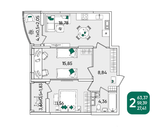 | Площадь, кв.м. | 63.37 |