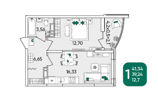 Продается однокомнатная новостройка, 41.34 кв.м., 12/24 эт