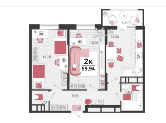 Продается 2-х комн. новостройка, 59.94 кв.м., 11/18 эт