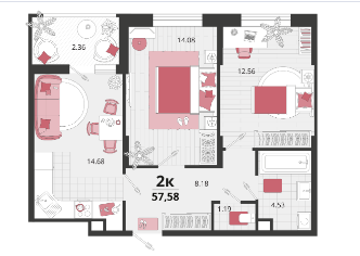 Продается 2-х комн. новостройка, 57.58 кв.м., 11/18 эт