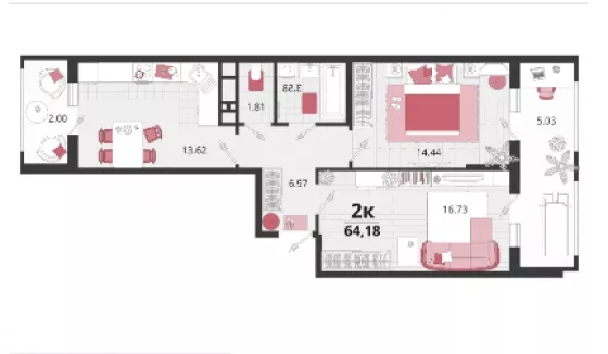 | Площадь, кв.м. | 64.18 |