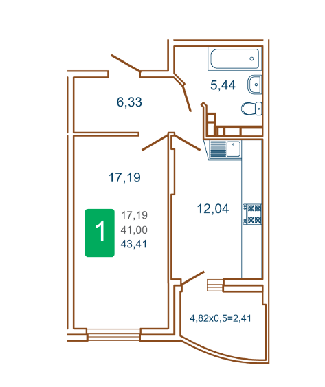 | Площадь, кв.м. | 43.8 |