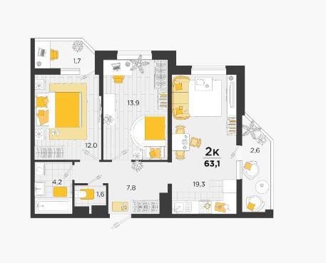 Продается 2-х комн. новостройка, 63.1 кв.м., 6/23 эт