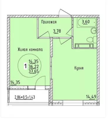 Продается однокомнатная новостройка, 37.65 кв.м., 16/19 эт