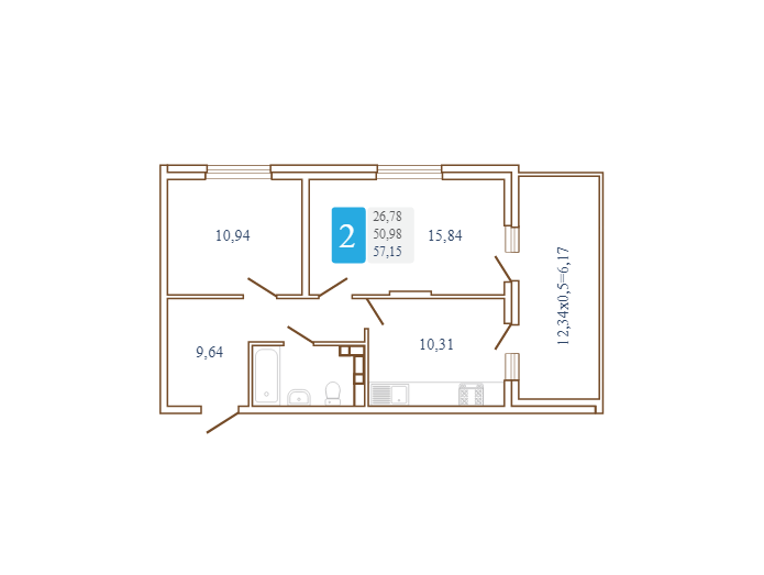 В избранное двухкомнатная квартира