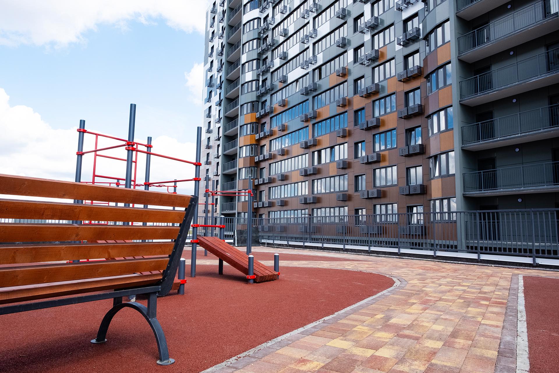 На территории комплекса собственный парк, аллея, два детских сада, школа и поликлиника...