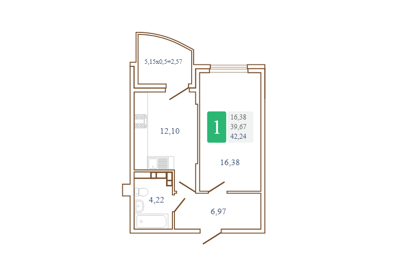 Продается однокомнатная новостройка, 40 кв.м., 7/16 эт