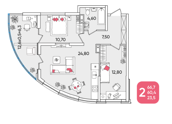 Продается 3-х комн. новостройка, 66.7 кв.м., 9/24 эт