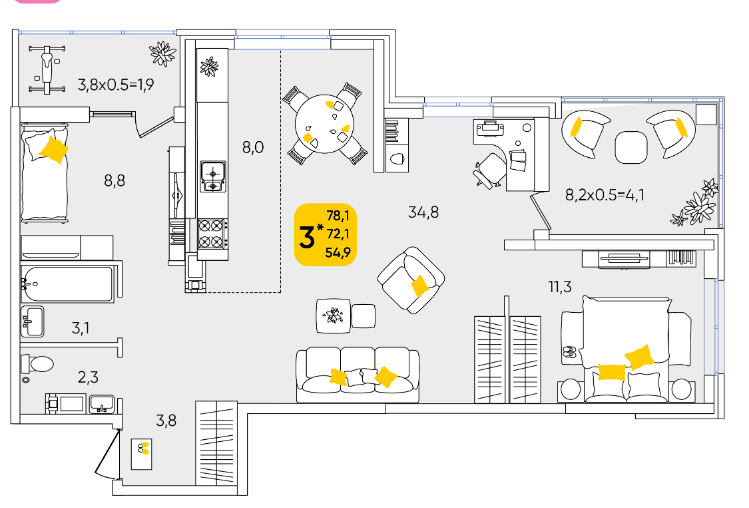 Продается 3-х комн. новостройка, 77.5 кв.м., 17/24 эт