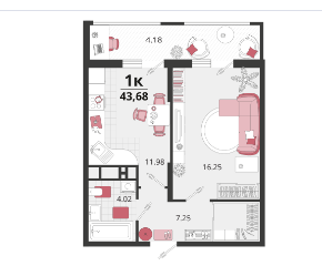 | Площадь, кв.м. | 43.68 |