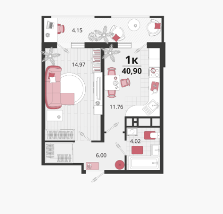 Продается однокомнатная новостройка, 40.9 кв.м., 12/18 эт