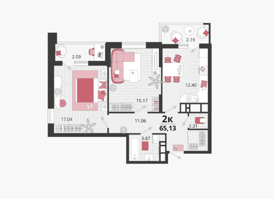 Продается 2-х комн. новостройка, 65.13 кв.м., 9/24 эт