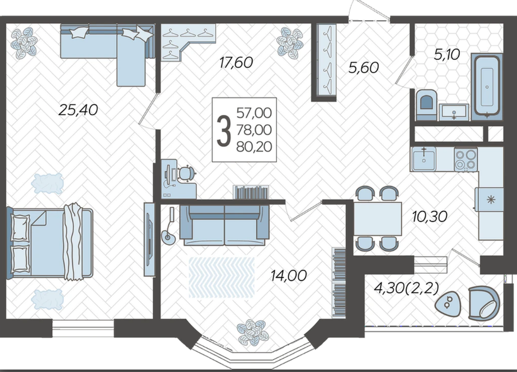 Продается 3-х комн. новостройка, 80.2 кв.м., 15/16 эт