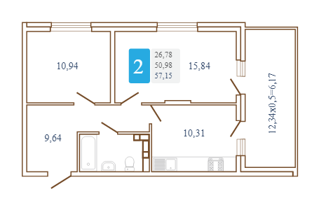 Двухкомнатная квартира улучшенной планировки.