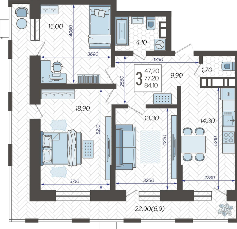 Продается 3-х комн. новостройка, 84.1 кв.м., 8/12 эт