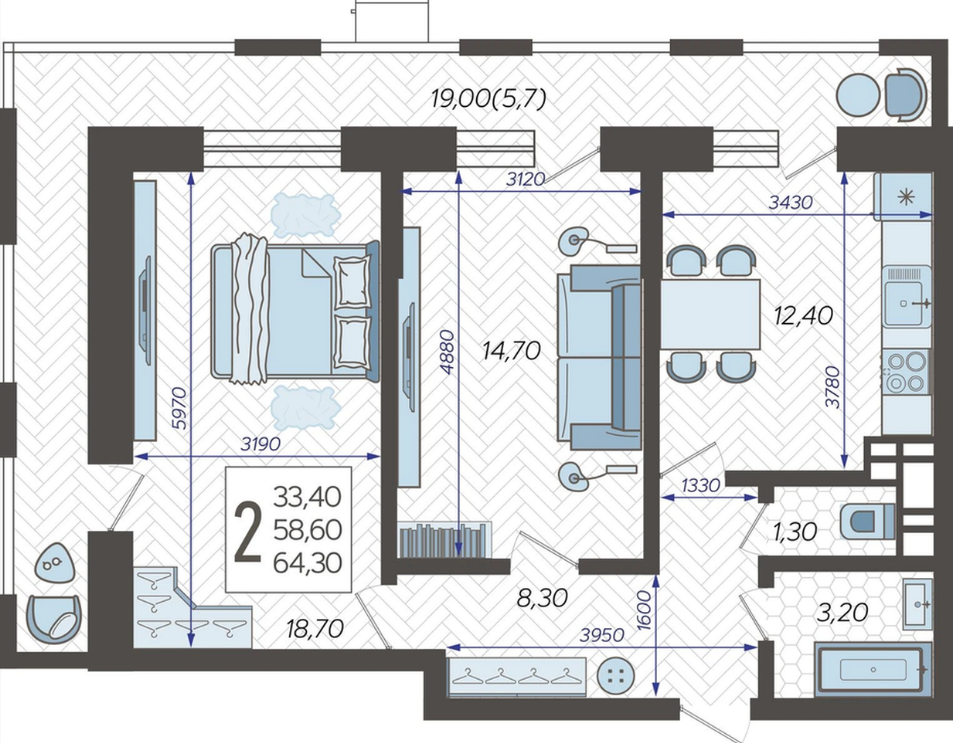 | Площадь, кв.м. | 64.3 |