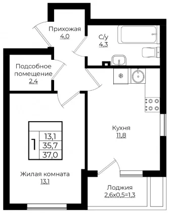 Продается однокомнатная новостройка, 37 кв.м., 5/9 эт