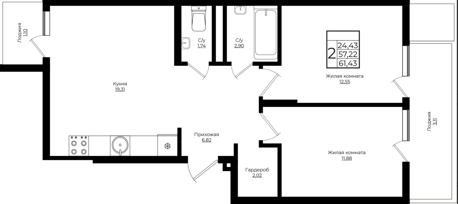 | Площадь, кв.м. | 61.43 |