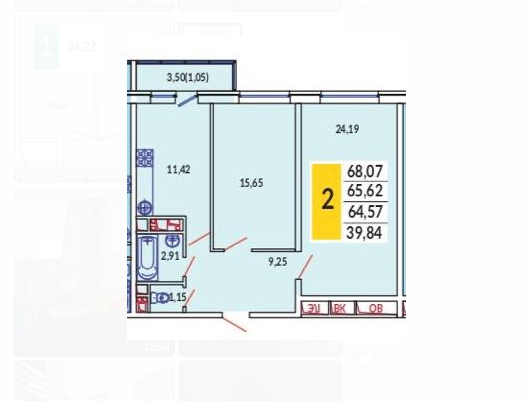 Продается 2-х комн. новостройка, 68.07 кв.м., 8/22 эт
