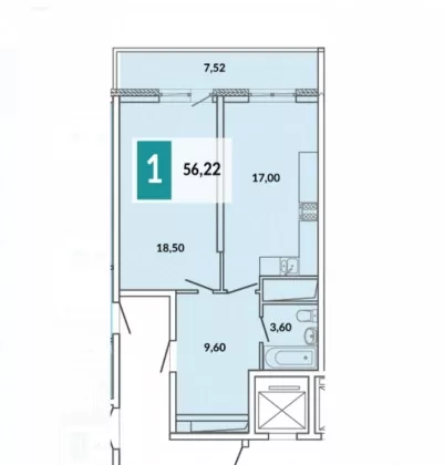 Продается однокомнатная новостройка, 56.22 кв.м., 7/22 эт