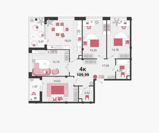 Продается 4-х комн. новостройка, 109.99 кв.м., 22/24 эт