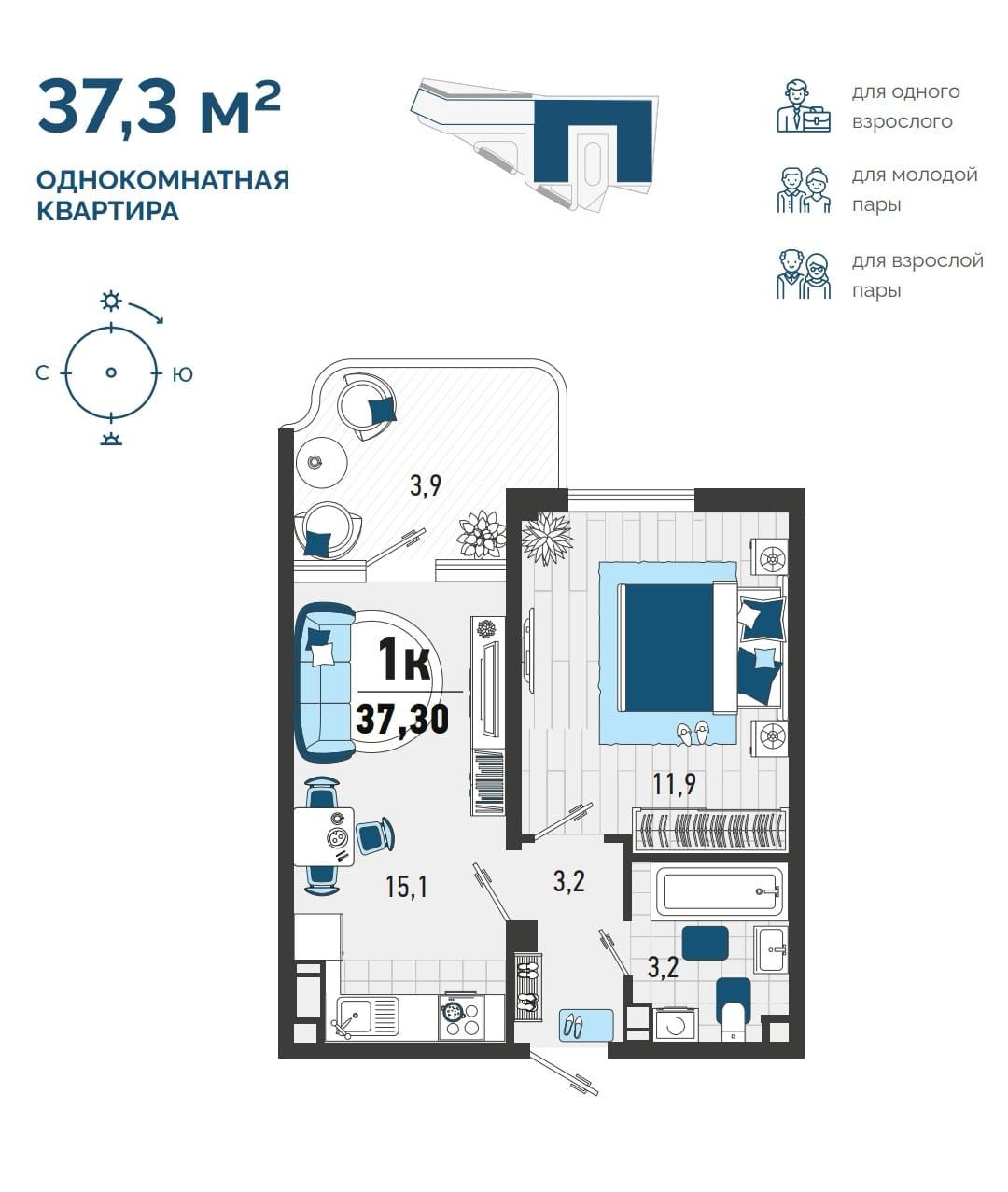 В избранное однокомнатная квартира