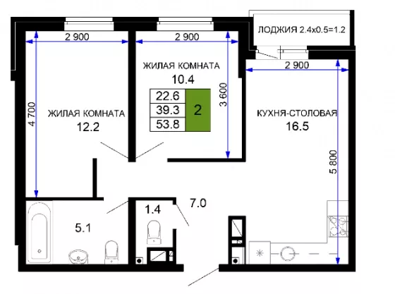 Продается 2-х комн. новостройка, 55 кв.м., 10/19 эт
