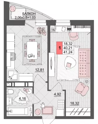 Однокомнатная квартира в строящемся комплексе класса комфорт+