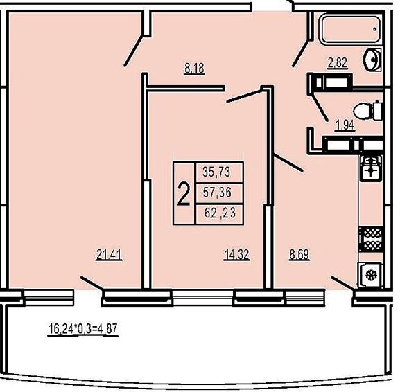 Продается 2-х комн. новостройка, 62 кв.м., 14/17 эт