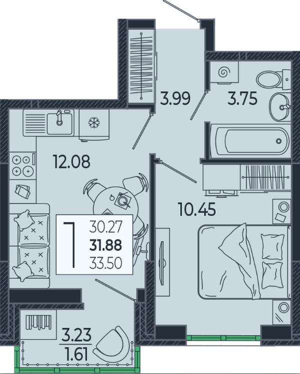Продается однокомнатная новостройка, 33.5 кв.м., 12/21 эт