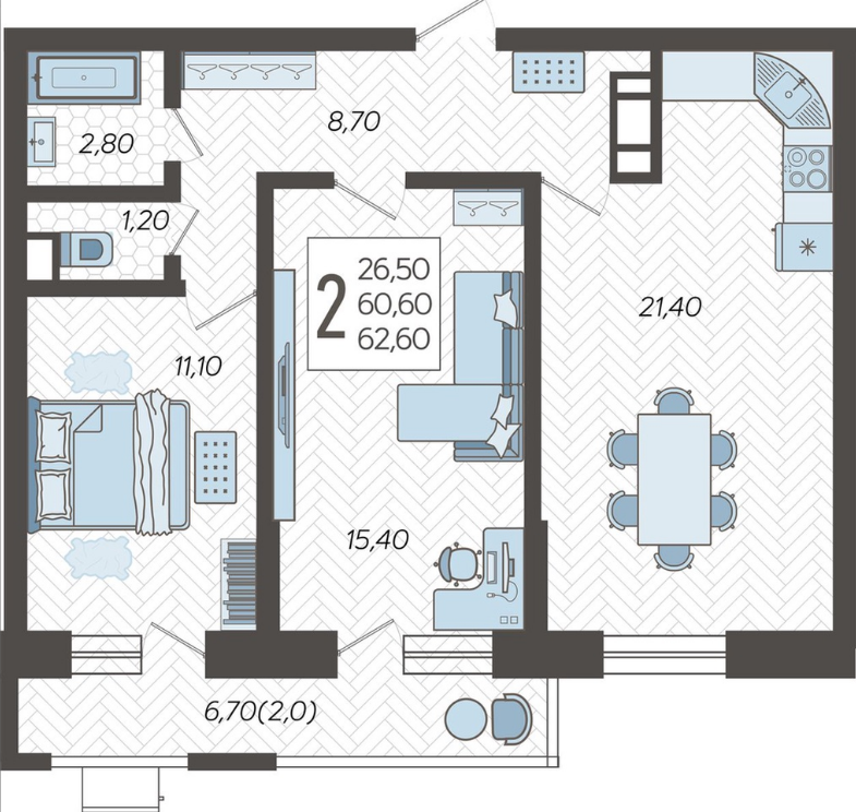 Продается 2-х комн. новостройка, 62.6 кв.м., 5/12 эт
