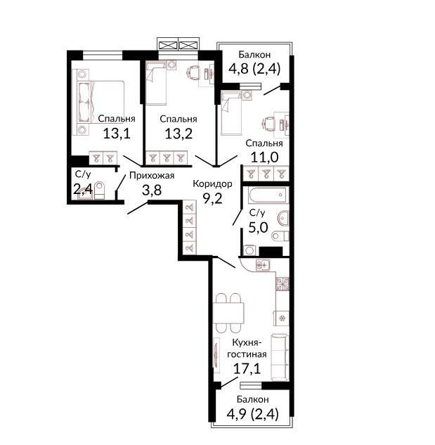 Продается 3-х комн. новостройка, 81.8 кв.м., 11/23 эт