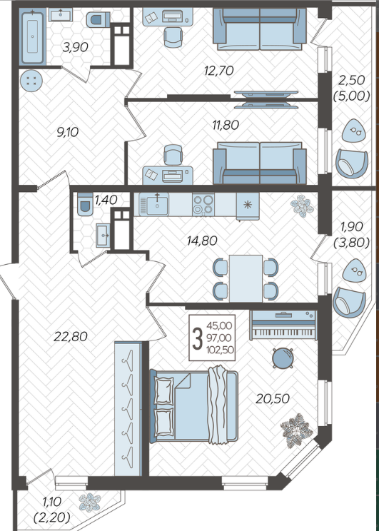 Продается 3-х комн. новостройка, 102.5 кв.м., 11/16 эт